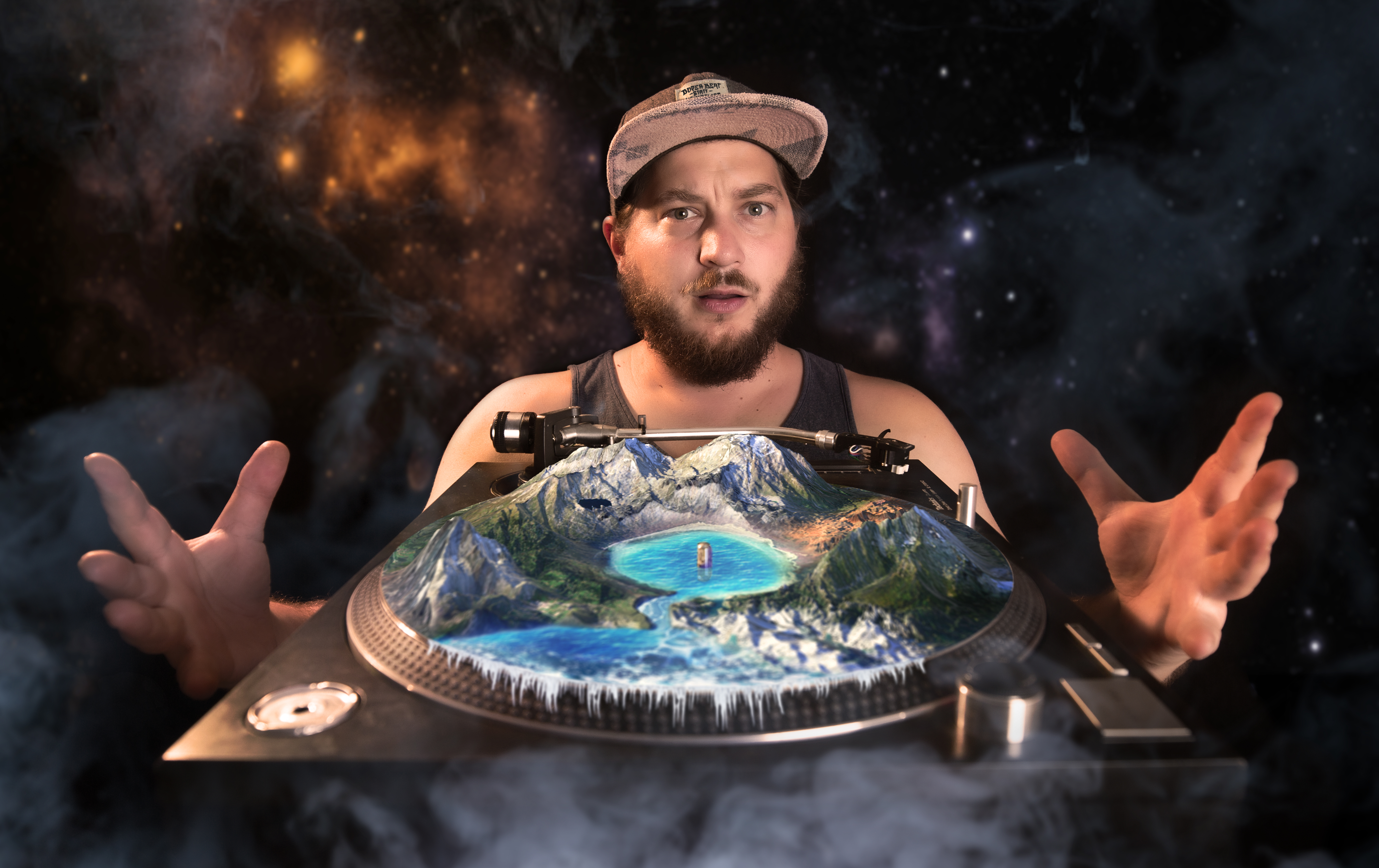 David Scheid unternimmt in seinem neuen Programm eine multimediale Reise rund um den Begriff „Welt Scheibe“. Vom Ursprung des Beats und den ersten urzeitlichen Raves, über Scheiben Welten und Disco Kugeln, bis hin zur modernen Popmusik.