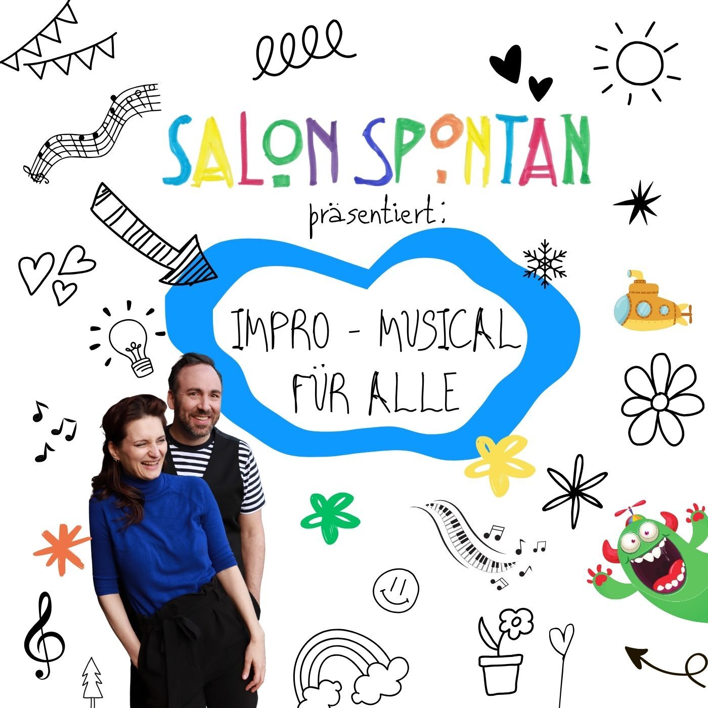 Improvisiertes Musical – was ist das? Beim improvisierten Musical, kurz Impro-Musical, gibt es keinen auswendig gelernten Text und auch keine schon komponierte Musik: Alle Lieder, Figuren und Szenen entstehen direkt im Moment, vor Deinen Augen und Dank Deiner Ideen!