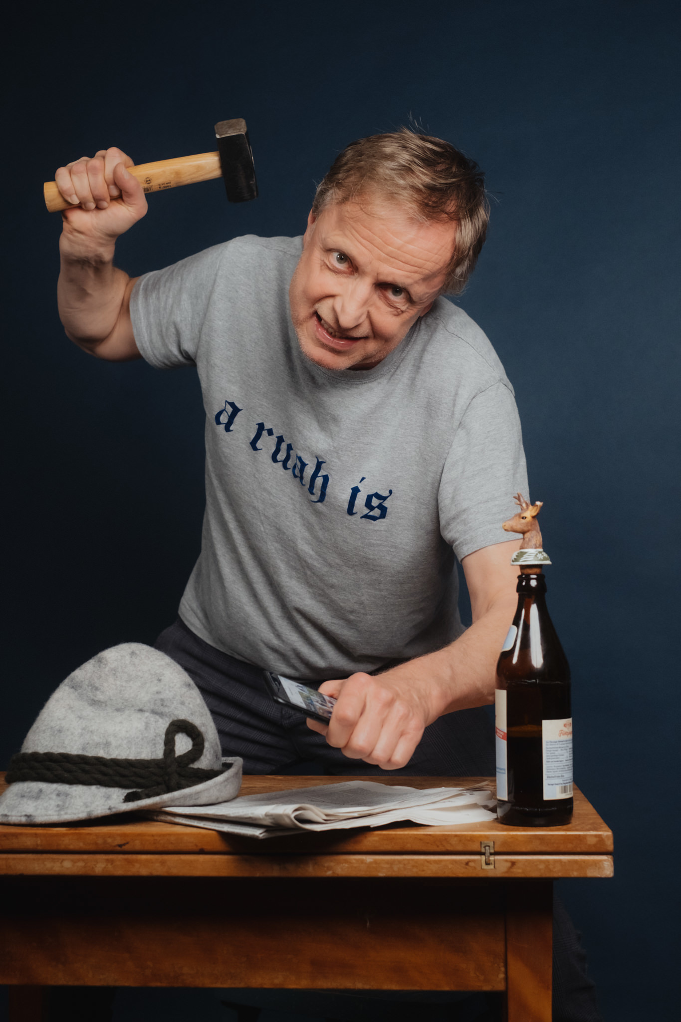 Gottseidank beherrscht der Wort- und Rechtsverdreher neben diversen Fremdsprachen auch noch Oberlandlerisch und Unterlandlerisch. So steht an diesem Abend, verkörpert durch L.W. Müllers multiple Persönlichkeit, ein beachtliches Line-up auf der Bühne, verstärkt durch die permanenten Stimmen im Kopf, die auf Regeln der Correctness und die neue Geschlechterlehre mahnen. Da hilft am Ende nur ein Verweis auf unser verfassungsmäßig garantiertes Recht zu schweigen!